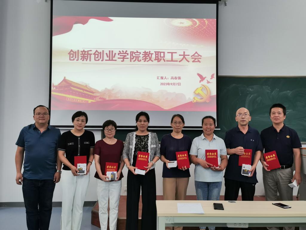 高春强书记首先传达了学校2023年秋季学期工作部署会会议精神,宣布了学院基层组织的设置及人员配备情况,对学院开展的党建工作进行总结并提出了新学期工作计划。会上,高春强书记对每位教职工提出如下要求:一是提高政治站位,树立危机意识,拒绝躺平,时刻以饱满激情投入教育教学工作;二是围绕“深耕创新能力,厚植创业意识”这个定位开展学院的各项工作;三是每位教师要秉承德高为师,身正为范的理念,潜心教书育人,多做教育教学研究;四是要求全院教职员工要团结一致、凝心聚力,为学院发展谱新篇。