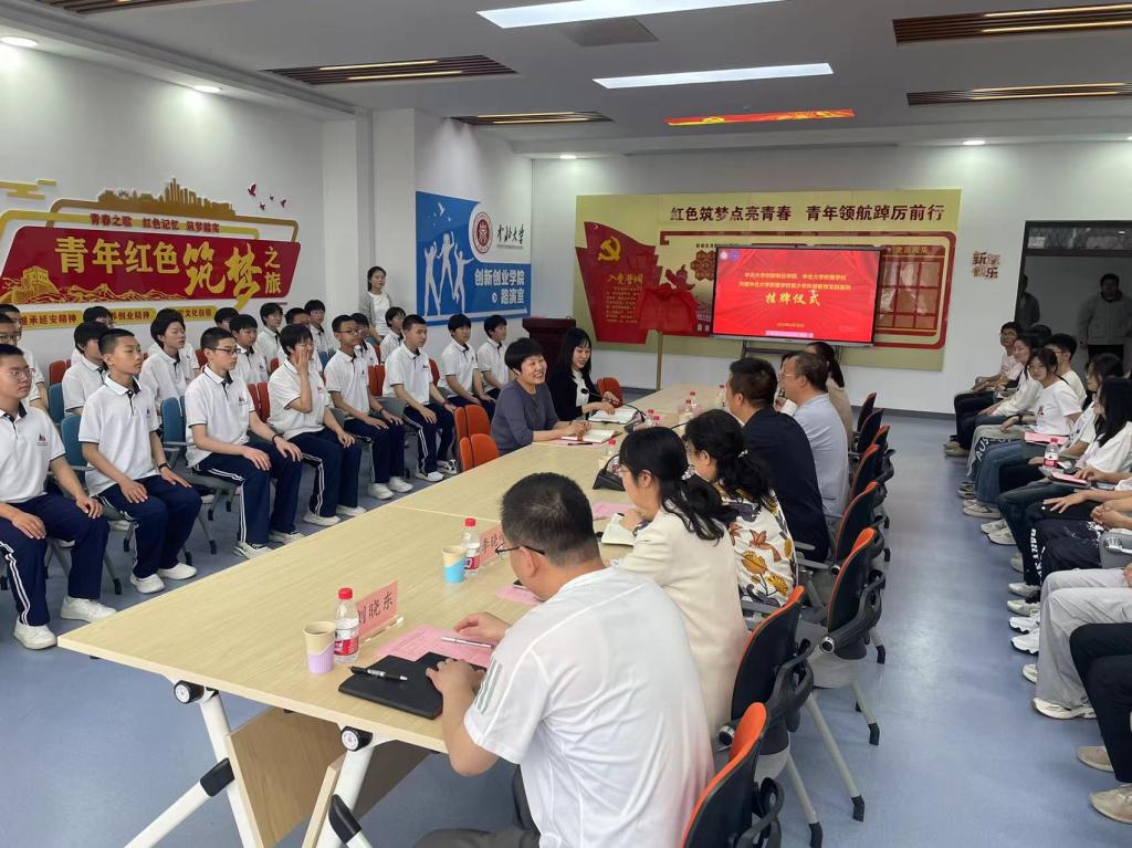 德赢ac米兰官方合作vwin党总支书记高春强、附属学校校长张峻岭、德赢ac米兰官方合作vwin、附属学校相关科室负责人及60余名大学生、中学生代表共同参加了仪式。