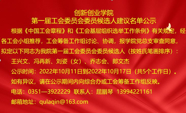 德赢ac米兰官方合作vwin第一届工会委员会委员候选人建议名单公示